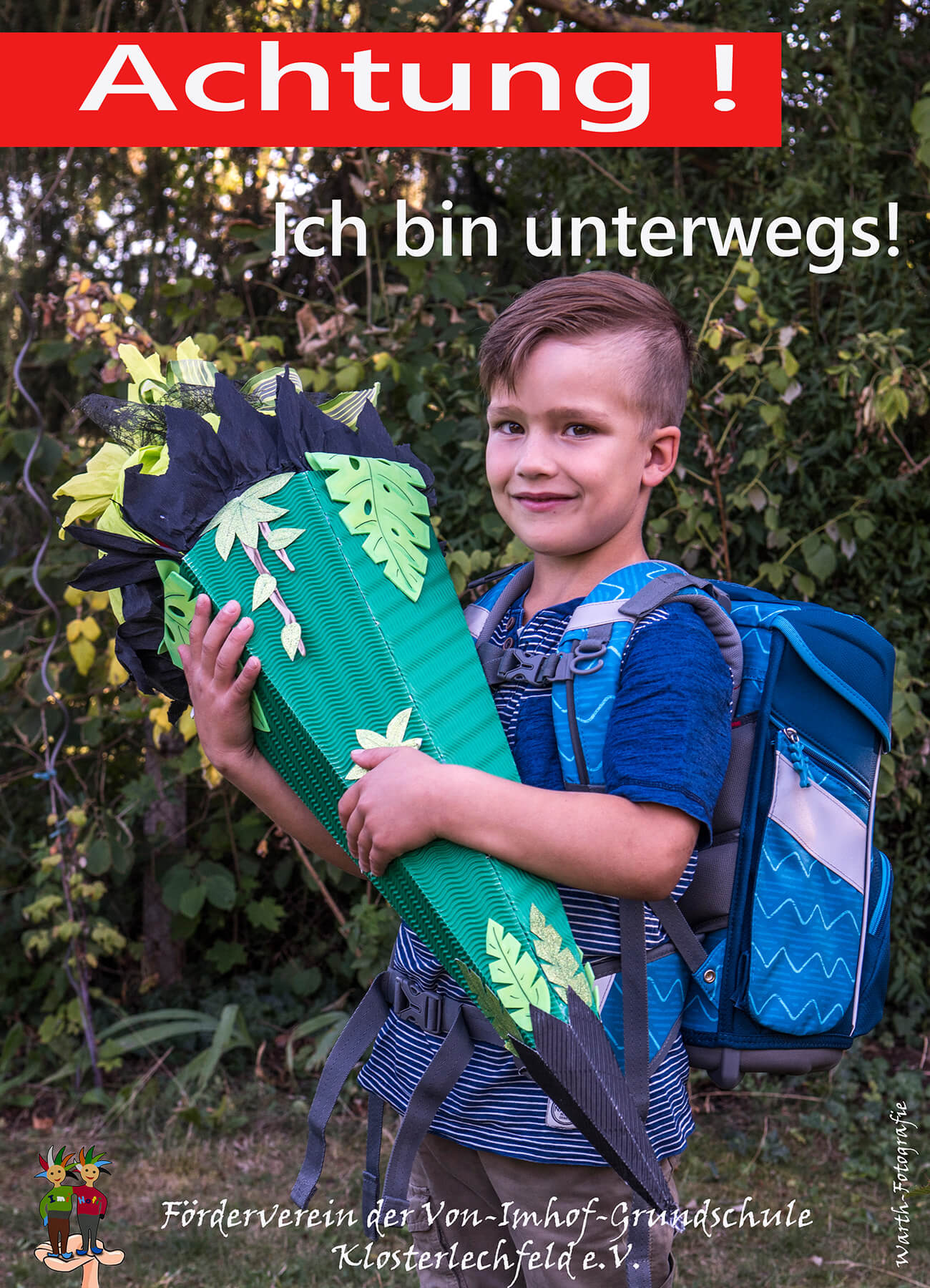 Unterstützend dazu haben wir Einschulungsplakate angehender Erstklässler des Klosterlechfelder Kindergartens mit ihren Schultüten an den Hauptstraßen des Ortes aufgehangen. Wir hoffen, damit ein wenig zur Aufmerksamkeit und Rücksicht auf die Verkehrsanfänger beigetragen zu haben!